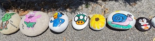 Unsere Steinschlange wächst und wächst. Eure Steine sind wunderschön und fangen viele Blicke der Fussgänger ein. Es freut uns sehr, dass ihr so fleissig mitmacht.