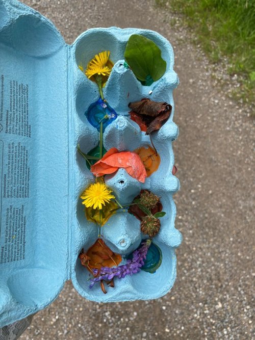 So viele schöne Farben zeigen sich im Sommer auf unseren Wiesen. Die Kinder suchen die passenden Farben in der Natur zu den Farbtupfern im Karton. Dabei waren sie sehr erfolgreich =)